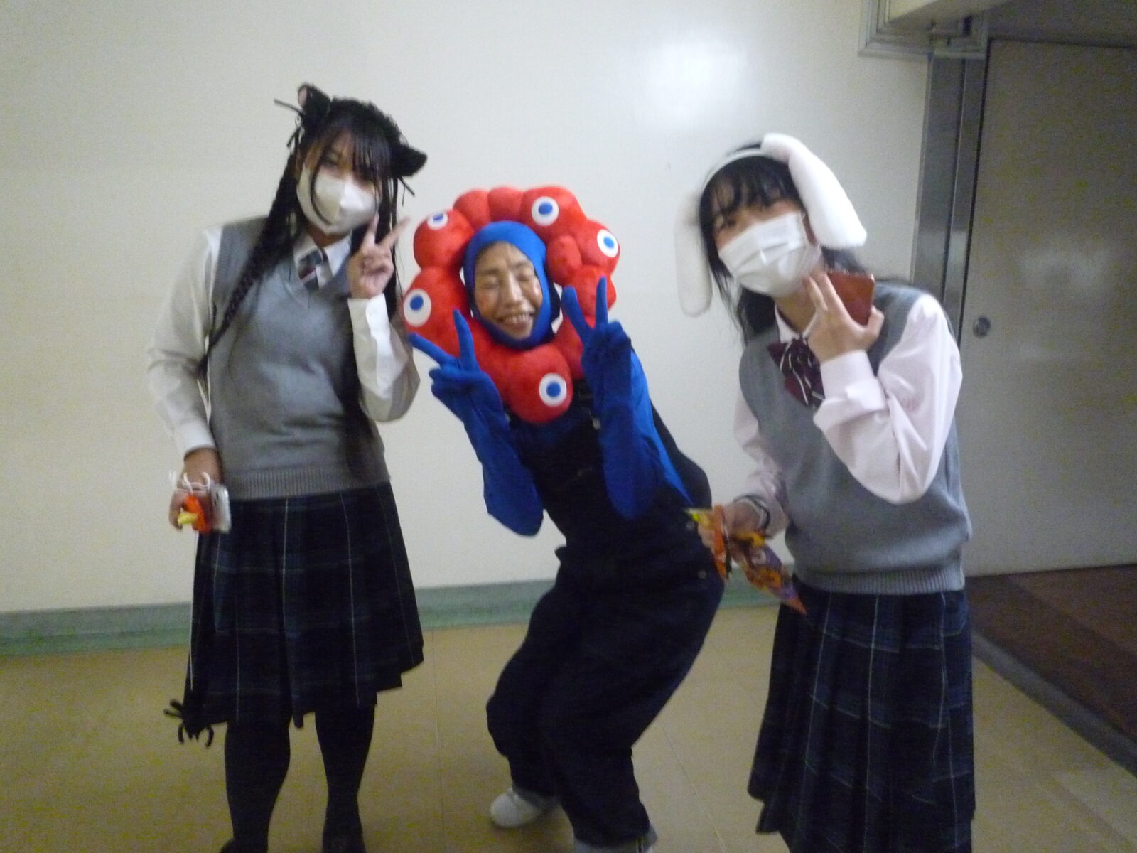 BLOG お知らせ 行事 2025.11.11 ハロウィンイベント2025🎃 10/31(金)、ハロウィンイベント2025を開催しました!この日に限って、生徒も教員も仮装OK、もちろん仮装しなくても楽しめればOK!という特別な1日を過ごしました。今年でこのイベントも3年目、午前中は仮装ありでの授業を行い、午後からお菓子交換・写真撮影会を行いました。 生徒・教員の仮装はとても個性的で、様々なモチーフがみられました。さあ、何の仮装をしているでしょうか?予想しながらご覧ください(ーwー)