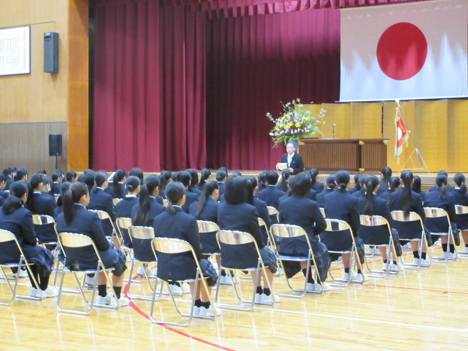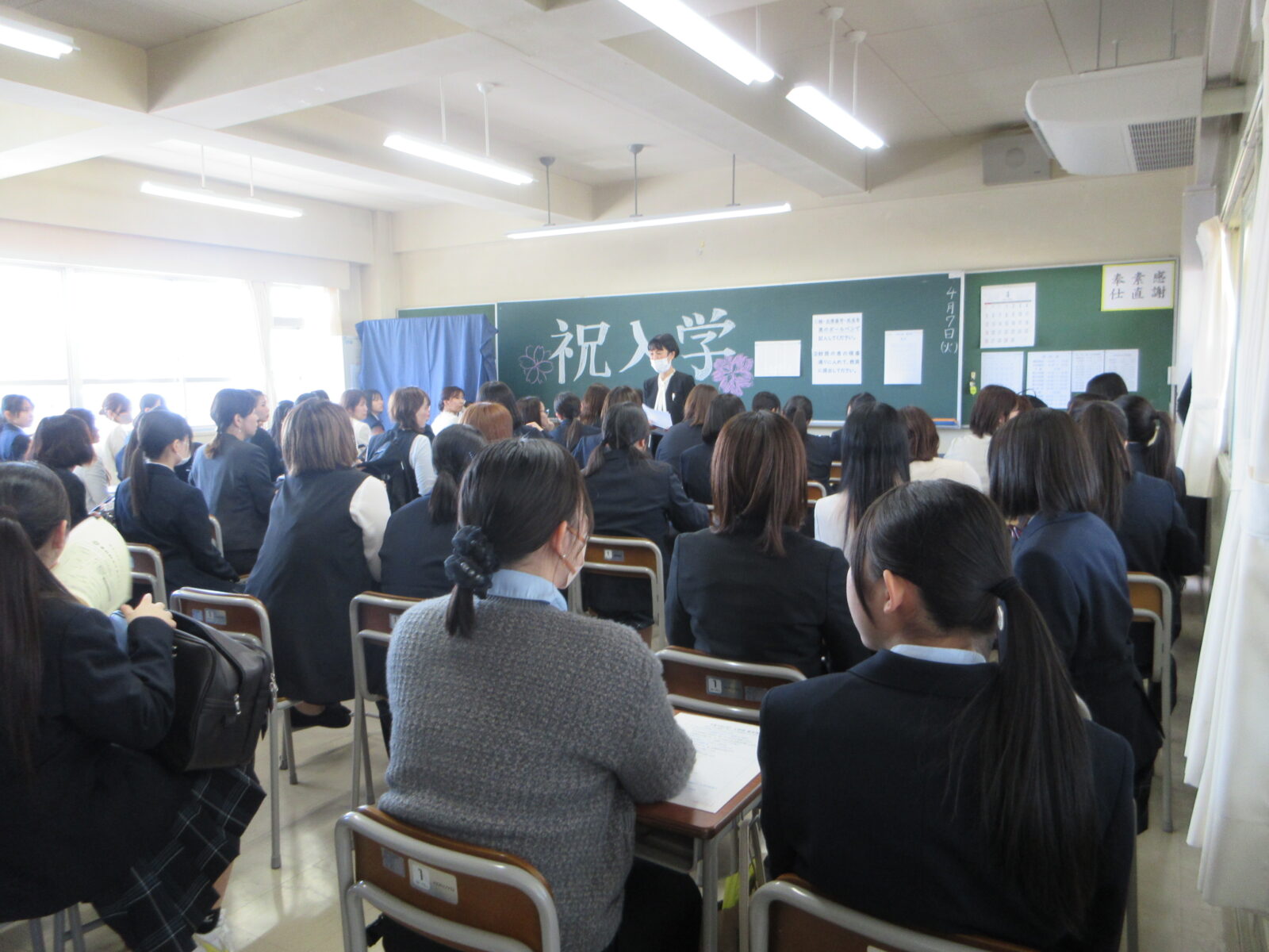 式の後は、学年主任の話、進路指導部長の話と続き、学校生活における目標や留意点の説明がありました。その後、各クラスに分かれ、ホームルームを行いました。