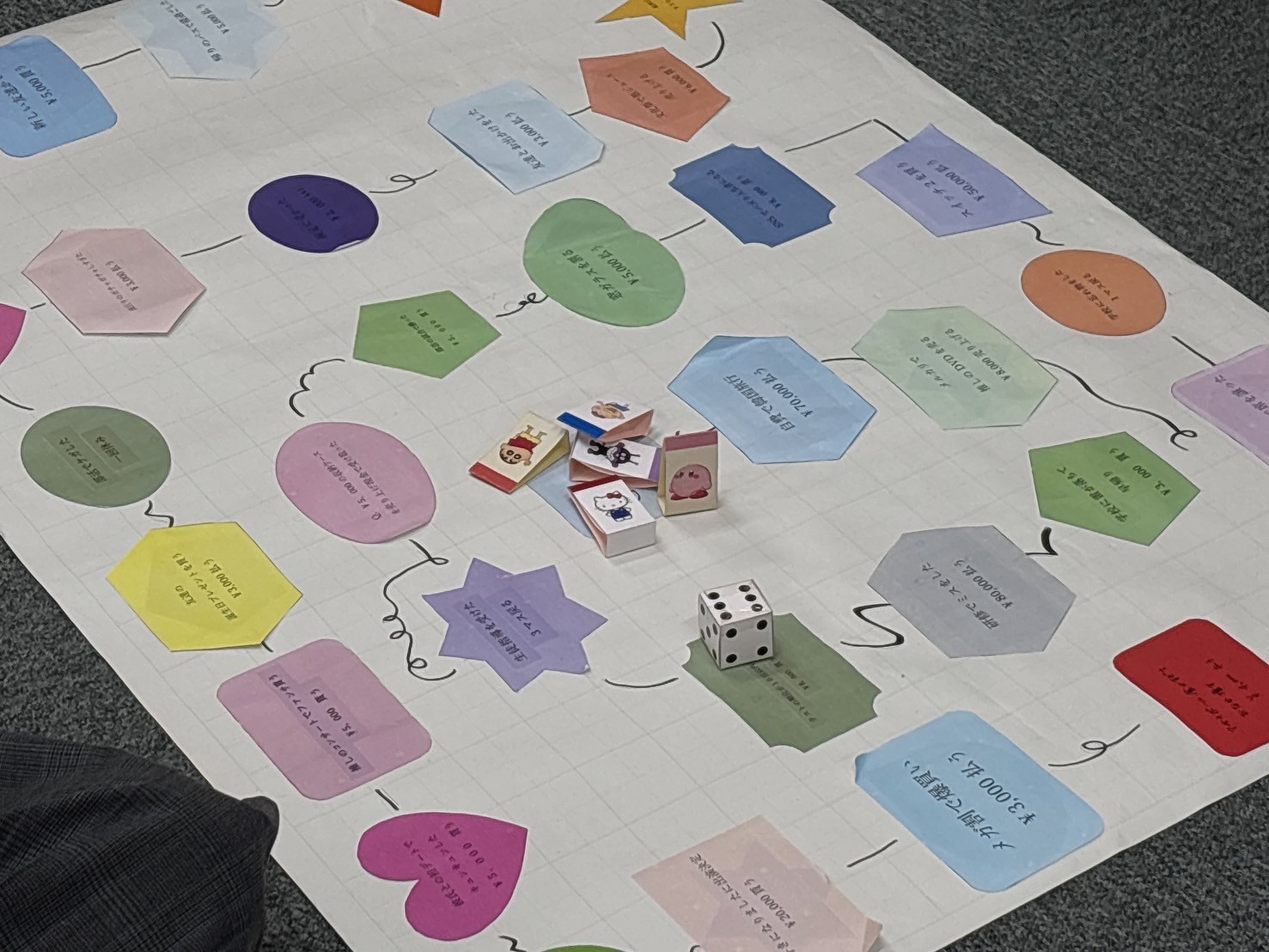 商業科の体験講座。商業の会計(簿記)に関わる内容を、人生ゲームにしてみました。