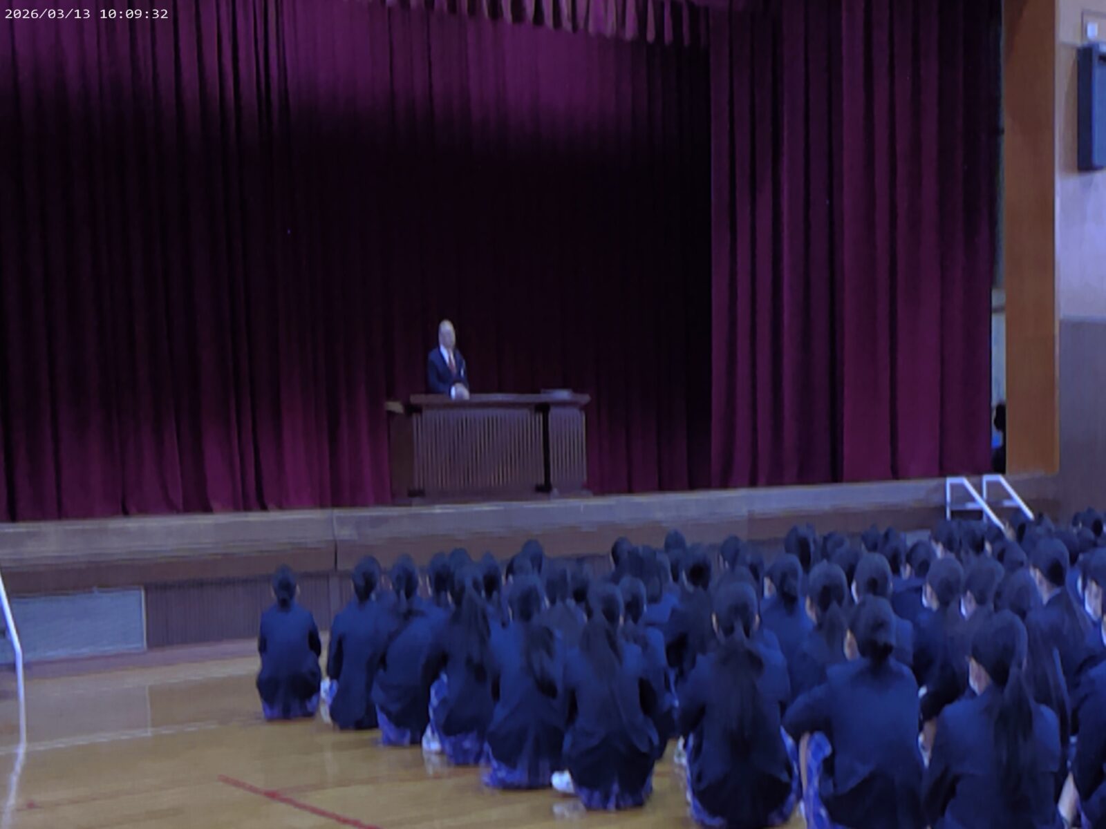 2026.03.16 終了式が行われました 3月13日(金)に令和7年度の終業式が行われました。 3年生が卒業し、1、2年生だけで少し寂しい体育館でしたが、思い返せば4月にまだ1年生気分が抜けない2年生と、入学したばかりで少し不安げな1年生が、本日はとても成長した姿で立っていました。 1年間全員が一生懸命頑張り、成長し、皆で進級できることがとても嬉しく、とても誇らしく感じました。 4月には、新3年生、新2年生となります。今年より1歩成長した姿が見られることを期待したいと思います。